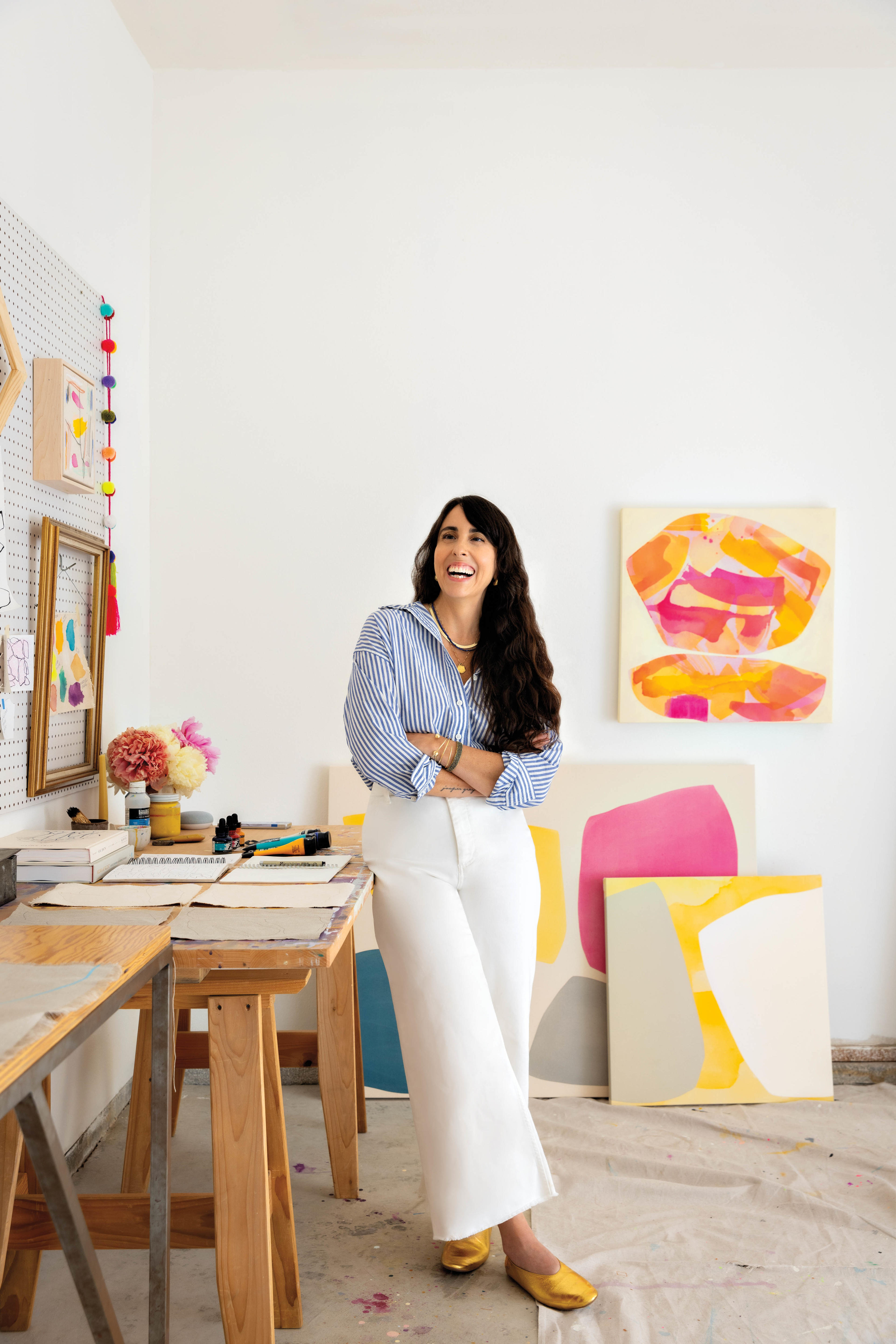 It’s not necessary to be privy to the specific stories behind each of Farrington’s color field paintings in order to find them emotionally resonant. “I am always so thrilled when people tell me how a particular piece made them feel happy, or calm or moved,” she says. “For me, the goal of sharing my work is to reflect and inspire these fleeting moments of joy and wonder.”